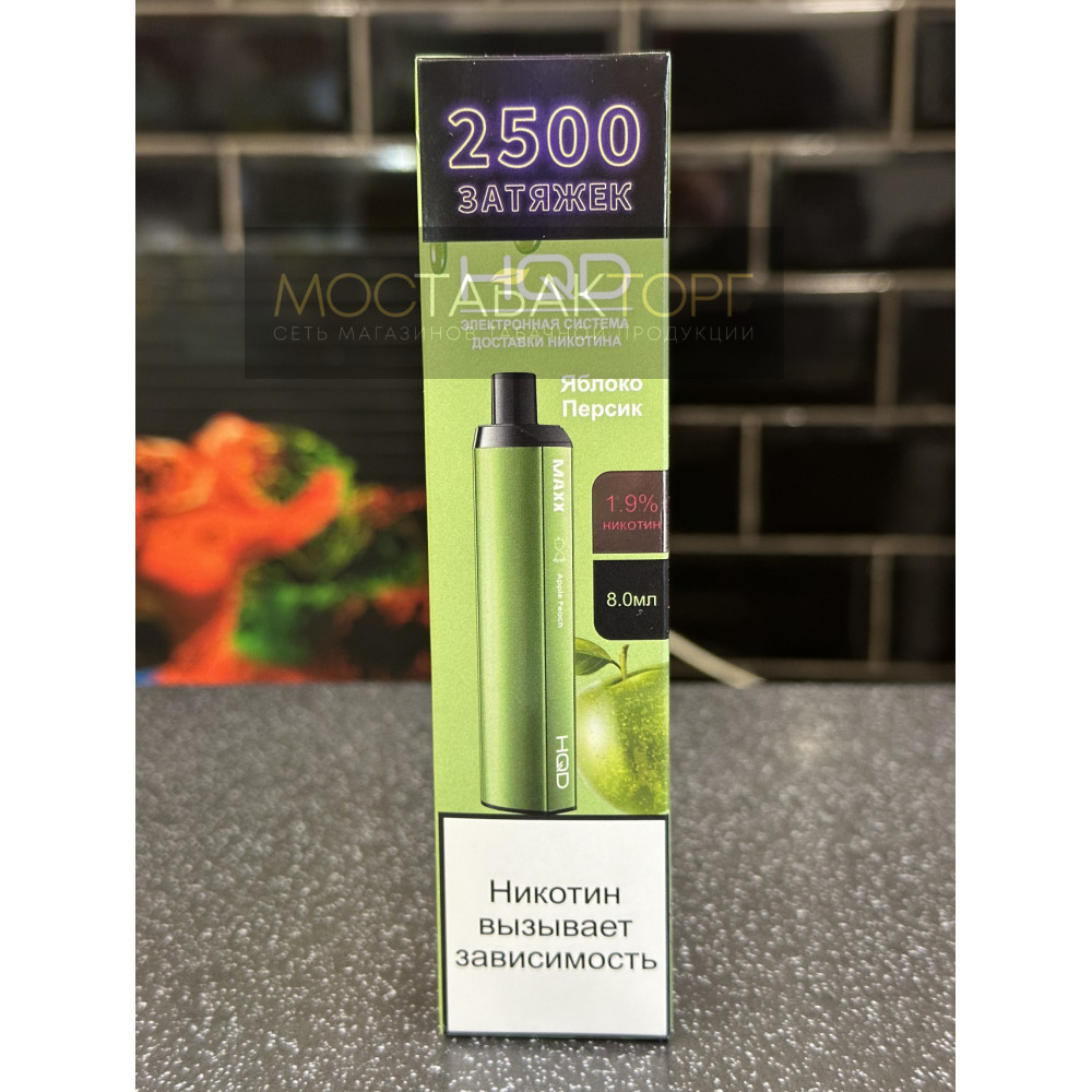 HQD видыMAXX (Макс) HQD вкусыЯблоко Персик HQD количество в блокешт